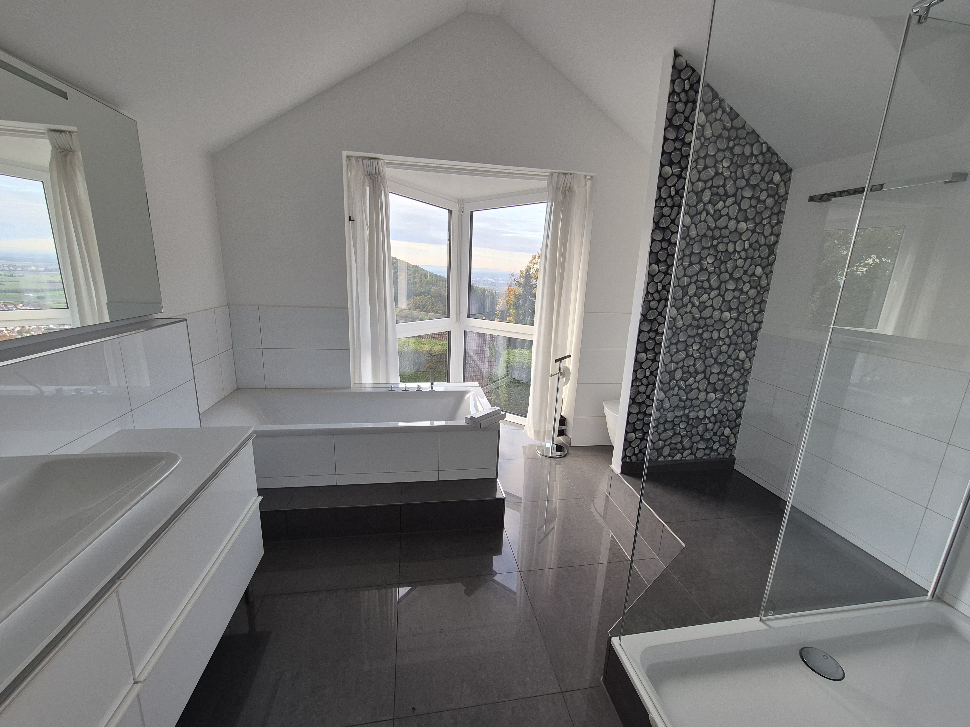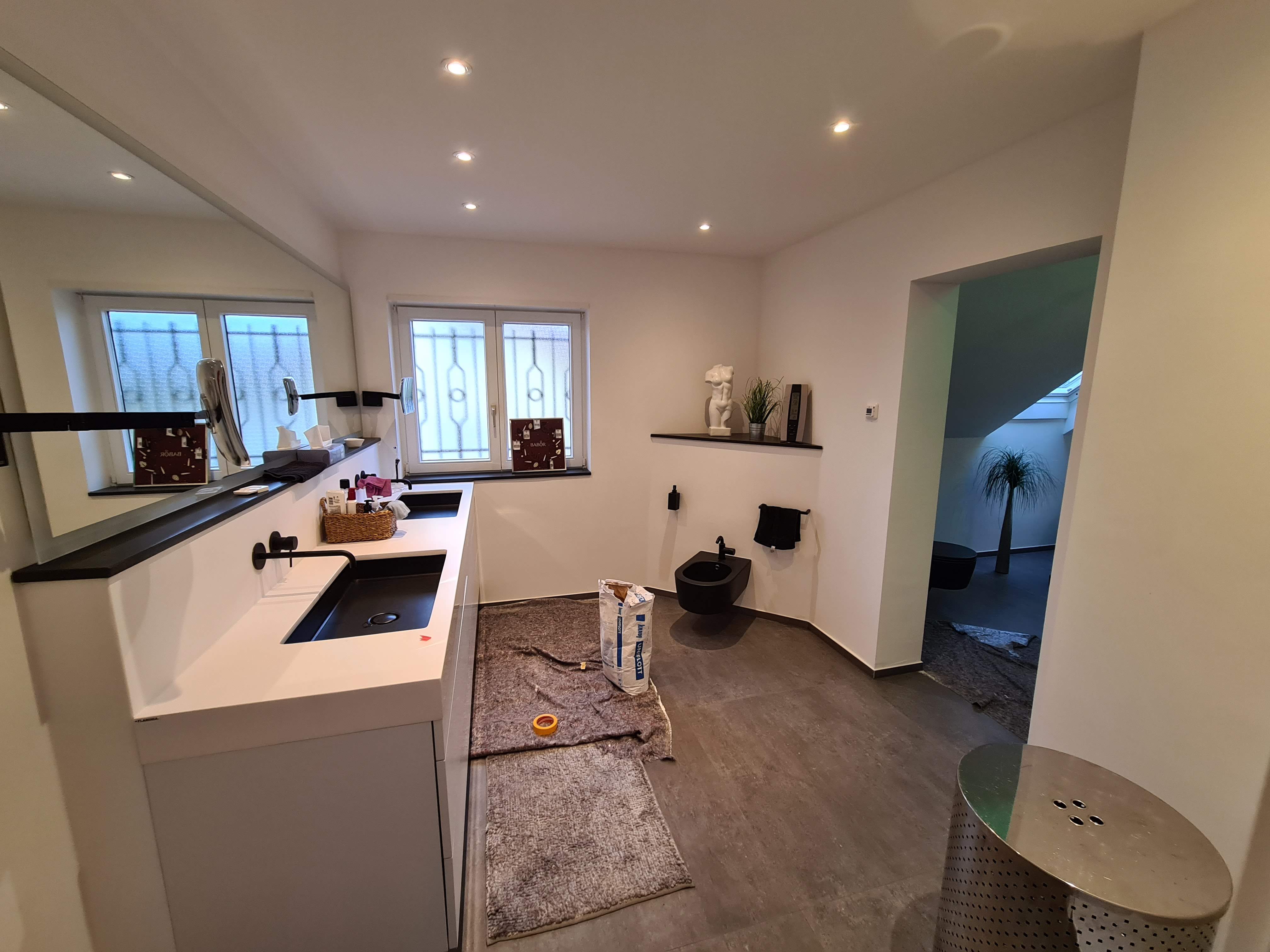 Komplette Badrenovierung mit moderner Ausstattung - von Fliesenarbeiten über Sanitärinstallation bis zur hochwertigen Badmöbelmontage. Ihre Wohlfühloase mit zeitlosem Design und funktionaler Raumnutzung.